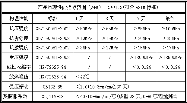 環氧灌漿料包括樹脂、硬化劑、填料三組分,該產品采用優質樹脂與精制填料,100%固含量,不含對人體有害的溶劑等揮發性物質。常溫下將每組材料中所含的三組分完全混合后即可使用,無需另外添加成分。另具以下特點: